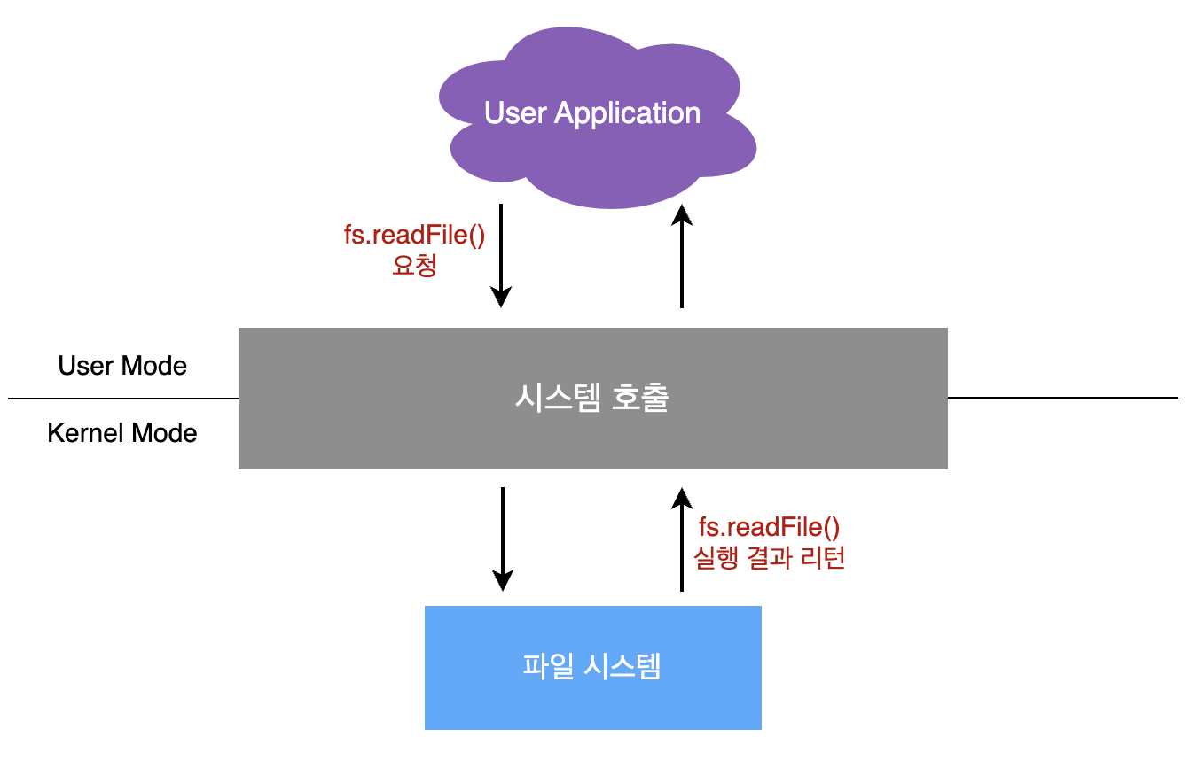 Ex) I/O 요청인 fs.readFile()이라는 파일 시스템의 파일을 읽는 함수가 발동한 경우