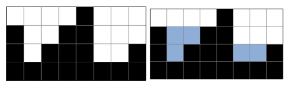첫 번째 줄에는 2차원 세계의 세로 길이 H과 2차원 세계의 가로 길이 W가 주어진다. (1 ≤ H, W ≤ 500) 두 번째 줄에는 블록이 쌓인 높이를 의미하는 0이상 H이하의 정수가 2차원 세계의 맨 왼쪽 위치